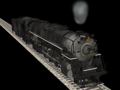 Description: 765NKP_Lima_Berkshire_2-8-4 steam locomotive. Originally made available in 2012, for Trainz 2004 on my website (colorado71.webs.com), republished as build3.5 in May 2023, for Trainz DLS, together with all dependencies. Builder: Lima, Baldwin, ALCo Length 100 ft 8 3⁄4 in (30.70 m) Height 15 ft 8 in (4.78 m) Drivers: 69 in (1.753 m) Leading wheel: 33 in (0.838 m) Trailing wheel: 43 in (1.092 m) Cylinders: 25 × 34 in (635 × 864 mm) Weight: 440,800 lb (199.9 t) Locomotive & tender combined weight: 802,500 lb (364.0 t) Tractive Effort: 64,135 lbf (285.3 kN). |